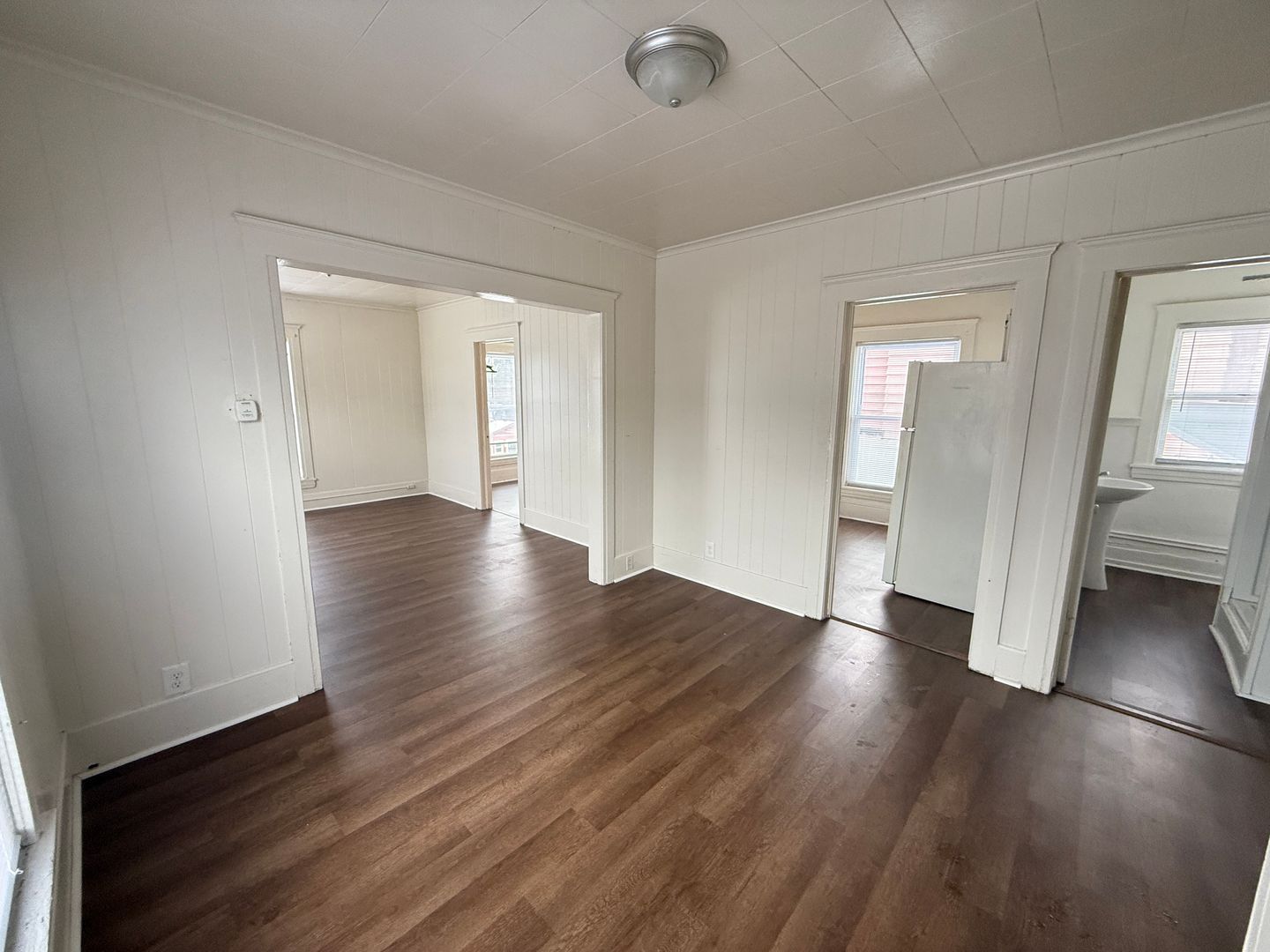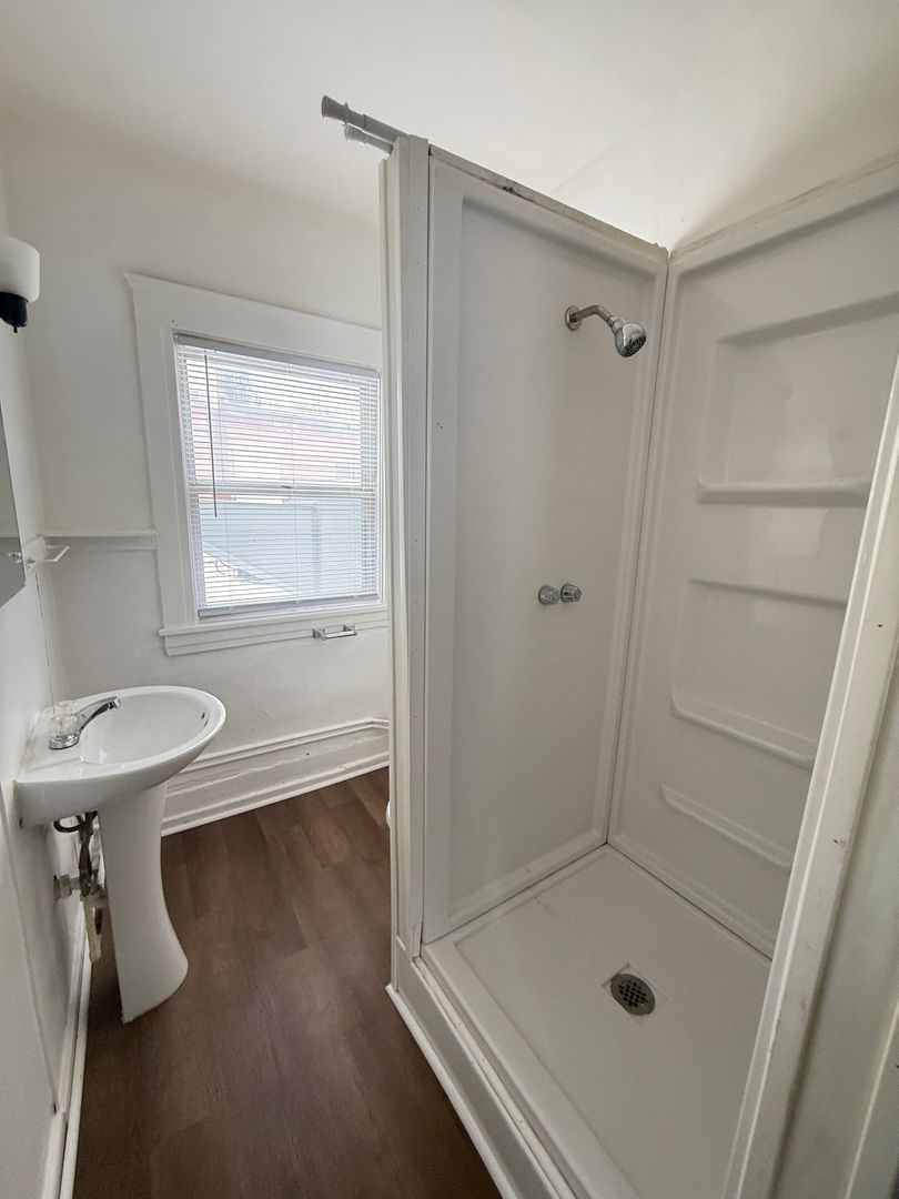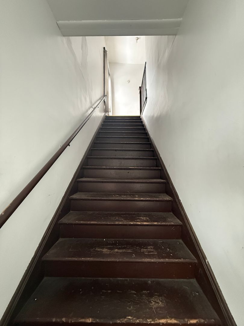 One-bedroom upper apartment in a well-maintained building above commercial space, accessed by an enclosed staircase. The unit features an open living and dining area, kitchen, bathroom, and bedroom. Unit is ready for move-in, it is conveniently located close to downtown and within walking distance of the hospital, with easy access to public transportation, local stores, and businesses.